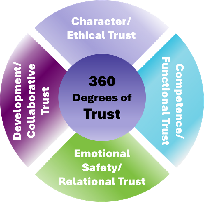 Our 360 Degrees of Trust model works by rating a series of interpersonal competencies called the Dimensions of Trust, rated across 4 layers of hierarchy.